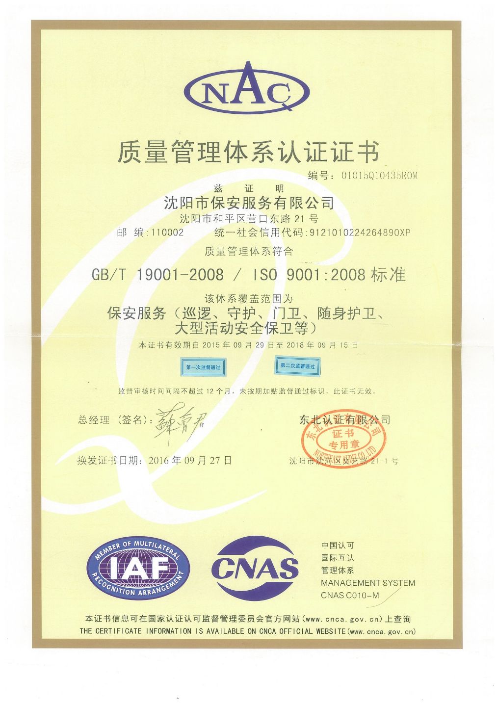 沈陽市保安服務有限公司于1999年11月由遼寧省公安廳批準成立,是沈陽市一家大型專業(yè)化國有保安服務機構,公司為中國保安協(xié)會、遼寧省保安協(xié)會和沈陽市保安協(xié)會常務理事單位。